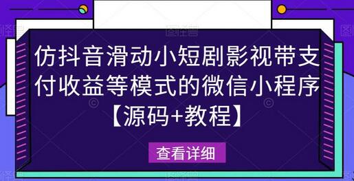 仿抖音滑动小短剧影视带支付收益等模式的微信小程序【源码+教程】