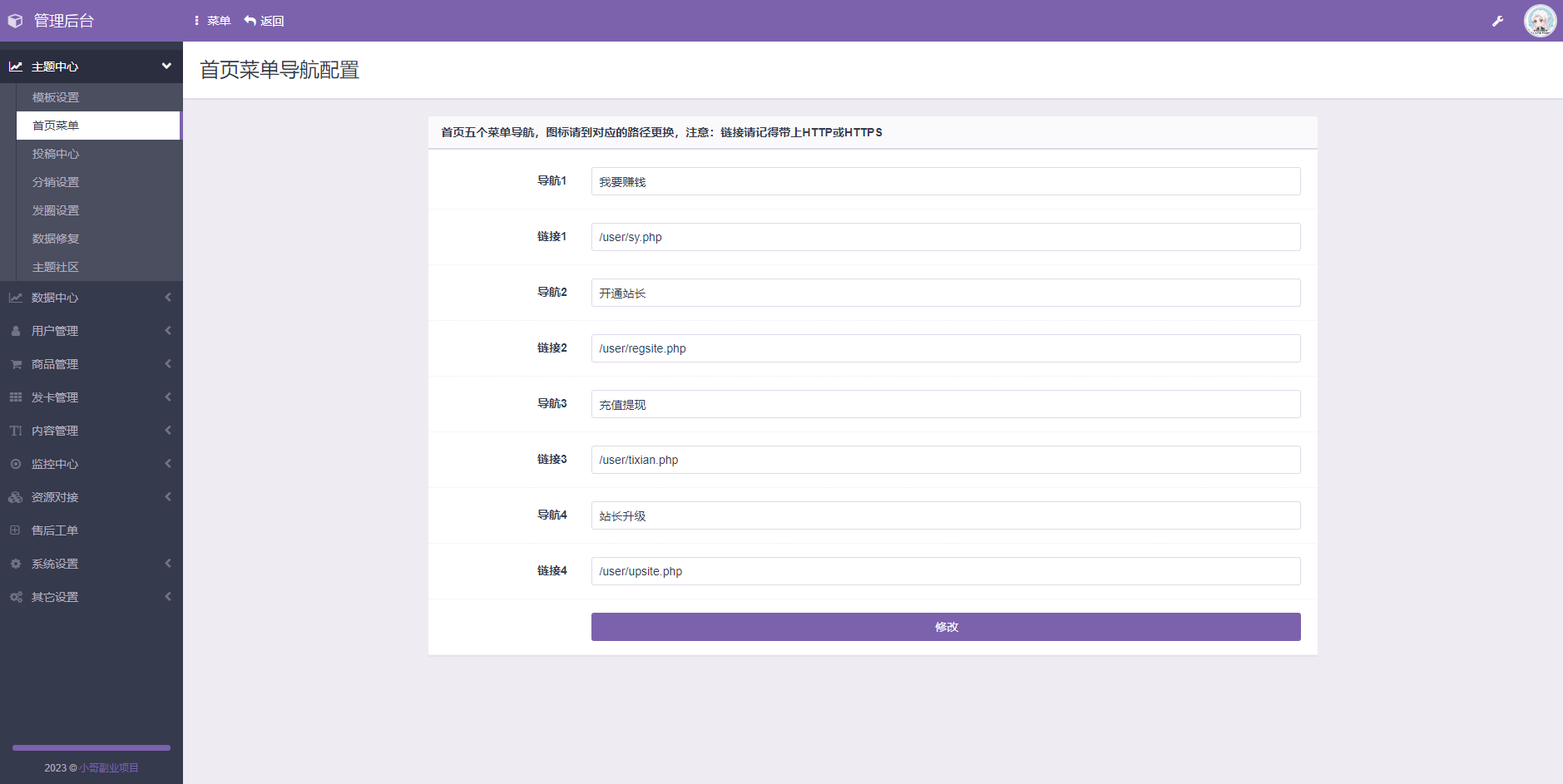 admin 冒泡网 2023-04-29 彩虹商城时光模板系统4.20更新功能修复 源码简介: 1.修复APP下载问题 2.修复个人分站设置空白问题 3.增加在线客服配置; 4.增加首页五个菜单配置,进入后台,点击主题设置-首页菜单; 5.修复发卡数量无法模糊显示; 源码截图: 本站声明: 1、本内容转载于网络,版权归原作者所有! 2、本站仅提供信息存储空间服务,不拥有所有权,不承担相关法律责任! 3、本内容若侵犯到你的版权利益,请联系我们,会尽快给予删除处理! 4、本站项目均需要自学,无指导;项目如有涉及付费环节,请自行判断,本站不负责项目的真伪!