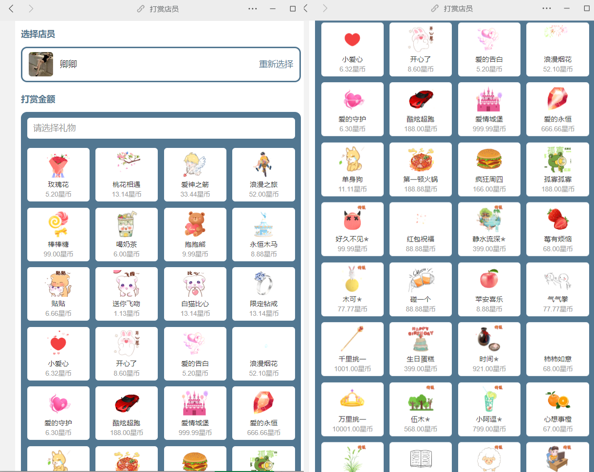 4.增加礼物墙功能 增加店员满足业绩,才能升级功能