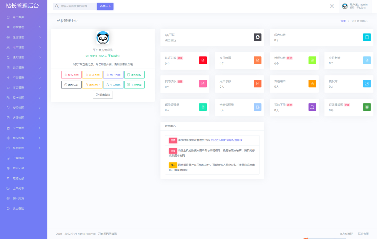 这是一套非常实用的授权源码,相比其他授权源码,该授权系统极度良心,没有任何后门,可以放心使用。