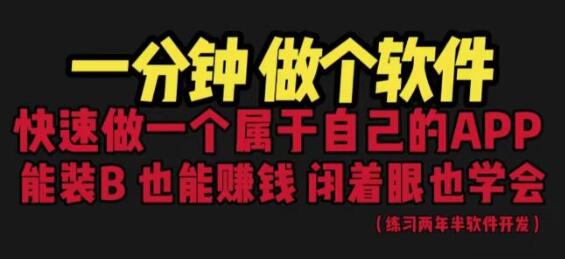 如今,软件盛行。每个人都想有一个属于自己的app,但是,很多人因为不会开发而止步。今天我教大家一种简单的方法,一分钟就可以做一个属于自己的软件,看完教程,你会发现很简单。并且也会教大家如何把自己的软件分享给别人下载。学会之后,帮别人做软件,一次收99,很合理!一天收十几单也很轻松!