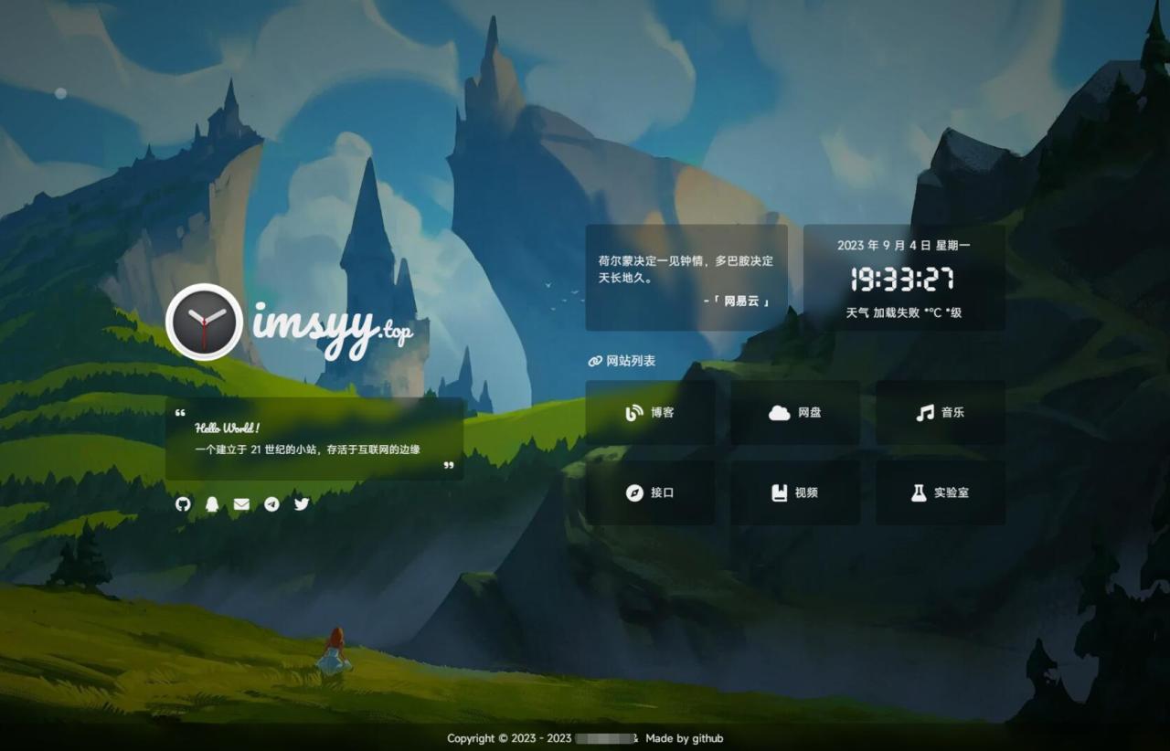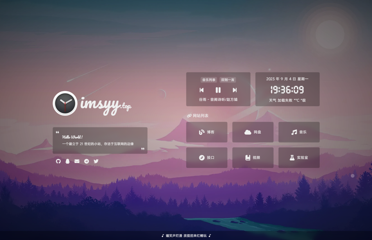 载入动画 站点简介 Hitokoto 一言 日期及时间 实时天气 时光进度条 音乐播放器 移动端适配