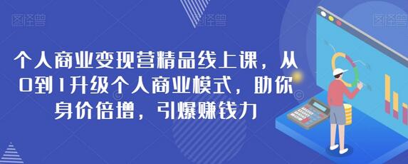 个人商业变现营精品线上课,从0到1升级个人商业模式,助你身价倍增,引爆赚钱力