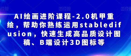 AI绘画进阶课程-2.0机甲重绘。帮助你熟练运用stabledifusion,快速生成高品质设计图稿、B端设计3D图标等。广阔的AI设计相关岗位的就业前景,更强的职业竞争力和不可替代性。