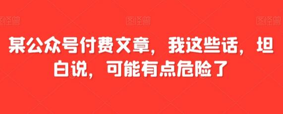 某公众号付费文章,我这些话,坦白说,可能有点危险了