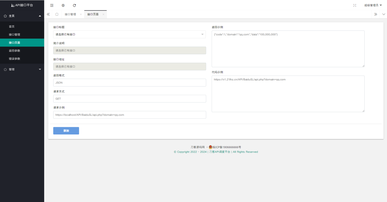 admin 冒泡网 2024-01-17 2024全新开发API接口调用管理系统网站源码 附教程 源码简介: 2024全新开发API接口调用管理系统网站源码 附教程 用layui框架写的 个人感觉很简洁 方便使用和二次开发 源码图片: 本站声明: 1、本内容转载于网络,版权归原作者所有! 2、本站仅提供信息存储空间服务,不拥有所有权,不承担相关法律责任! 3、本内容若侵犯到你的版权利益,请联系我们,会尽快给予删除处理! 4、本站项目均需要自学,无指导;项目如有涉及付费环节,请自行判断,本站不负责项目的真伪!