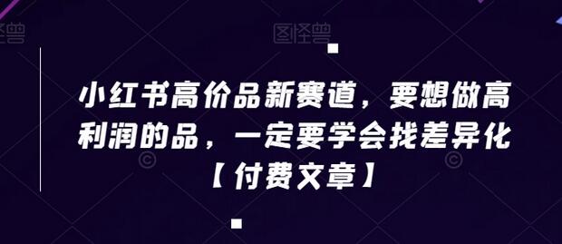 小红书高价品新赛道,要想做高利润的品,一定要学会找差异化【付费文章】