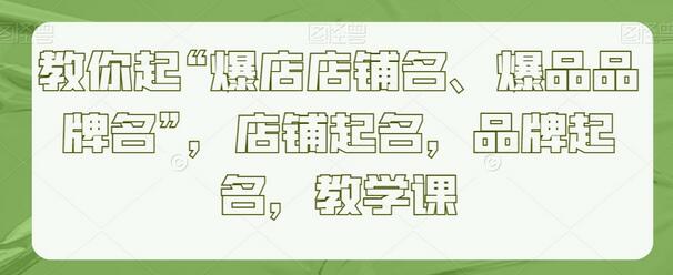 教你起“爆店店铺名、爆品品牌名”,店铺起名,品牌起名,教学课