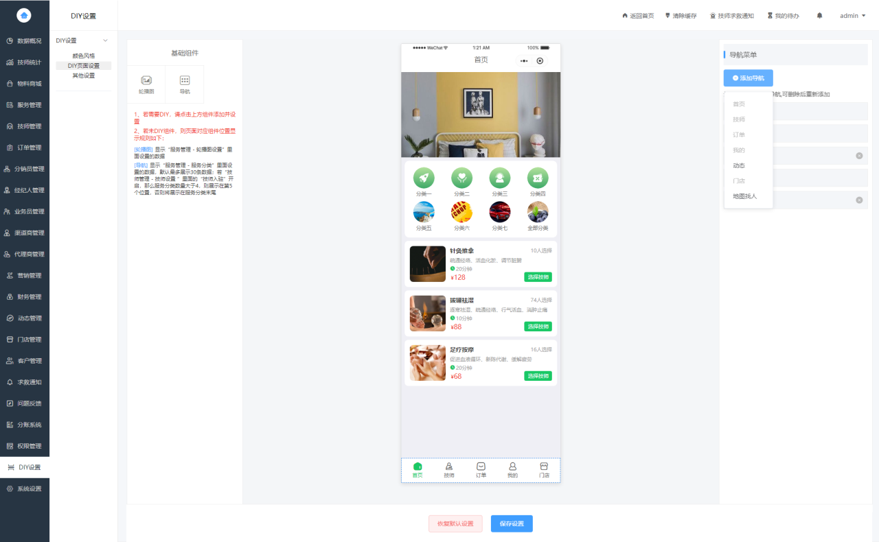 43、DIY(新增行业服务人员名称开关。例如技师、美容师、理疗师)