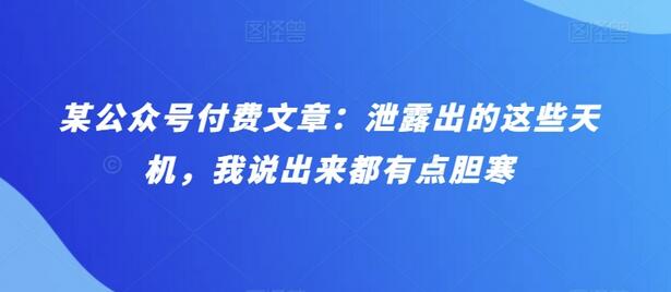 某公众号付费文章:泄露出的这些天机,我说出来都有点胆寒
