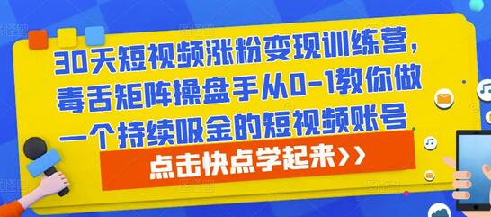 30天短视频涨粉变现训练营,毒舌矩阵操盘手从0-1教你做一个持续吸金的短视频账号