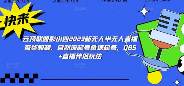 云顶联盟彭小四2023新无人半无人直播带货教程,自然流起号鱼塘起号,OBS+直播伴侣玩法