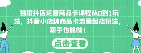 独狼抖店运营商品卡课程从0到1玩法,抖音小店纯商品卡流量起店玩法,新手也能做!