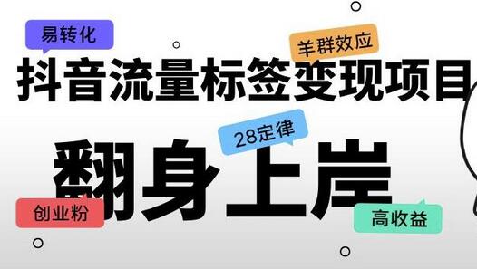 抖音流量标签变现项目,抖音创业粉轻松转化,单价高收益简单