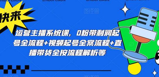运营主播系统课,0粉带利润起号全流程+视频起号全案流程+直播带货全按流程解析等