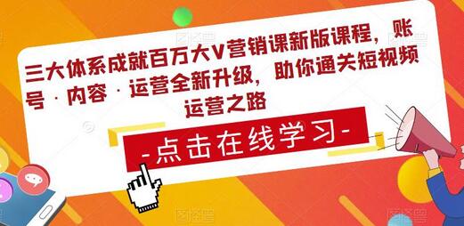 三大体系成就百万大V营销课新版课程,账号·内容·运营全新升级,助你通关短视频运营之路