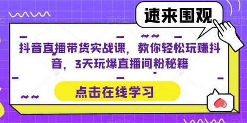 抖音直播带货实战课,教你轻松玩赚抖音,3天玩爆直播间