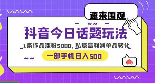 抖音今日话题玩法,1条作品涨粉5000,私域高利润单品转化 一部手机日入500