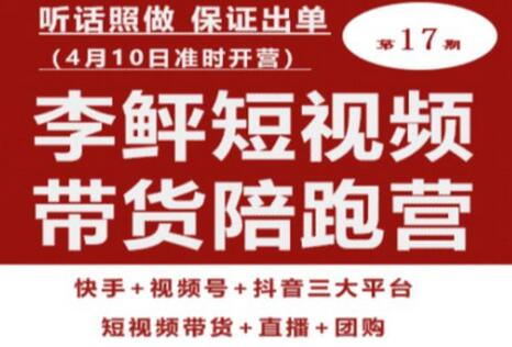 李鲆第17期短视频带货陪跑营,听话照做保证出单(短视频带货+直播+团购)