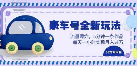 豪车号全新玩法,流量爆炸,5分钟一条作品,每天一小时实现月入过万