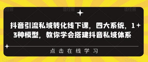 抖音引流私域转化线下课,四大系统,13种模型,教你学会搭建抖音私域体系