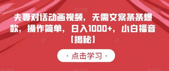夫妻对话动画视频,无需文案条条爆款,操作简单,日入1000+,小白福音