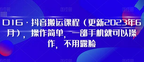 D1G·抖音搬运课程(更新2023年7月),操作简单,一部手机就可以操作,不用露脸