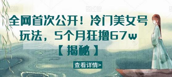 全网首次公开!冷门美女号玩法,5个月狂撸67w