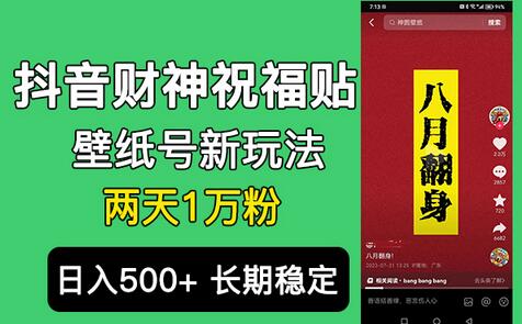admin 福缘网 2023-08-03 抖音财神祝福壁纸号新玩法,2天涨1万粉,日入500+不用抖音实名可多号矩阵 给大家分享的是抖音财神祝福贴壁纸号玩法实操全流程,简单无脑,抓住人心理诉求,流量离谱 而且不用抖音实名就可以多好矩阵操作 本站声明: 1、本内容转载于网络,版权归原作者所有! 2、本站仅提供信息存储空间服务,不拥有所有权,不承担相关法律责任! 3、本内容若侵犯到你的版权利益,请联系我们,会尽快给予删除处理! 4、本站项目均需要自学,无指导;项目如有涉及付费环节,请自行判断,本站不负责项目的真伪!