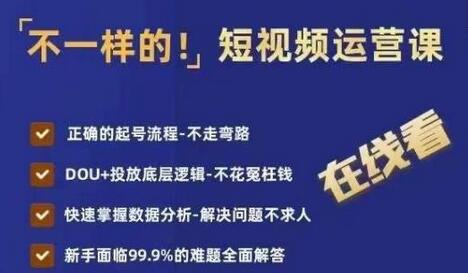 不一样的短视频运营课,正确的起号流程,DOU+投放底层逻辑,快速掌握数据分析