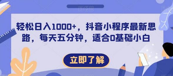 轻松日入1000+,抖音小程序最新思路,每天五分钟,适合0基础小白