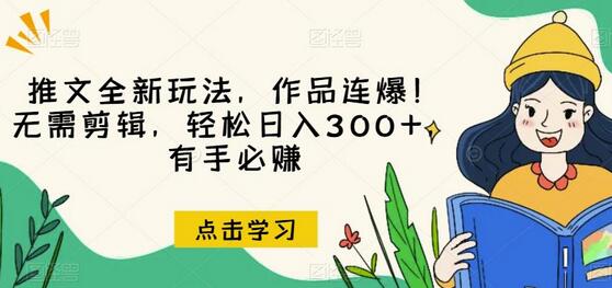 推文全新玩法,作品连爆!无需剪辑,轻松日入300+,有手必赚