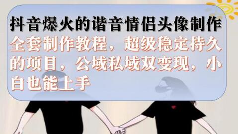 抖音爆火的谐音情侣头像制作全套制作教程,超级稳定持久,公域私域双变现