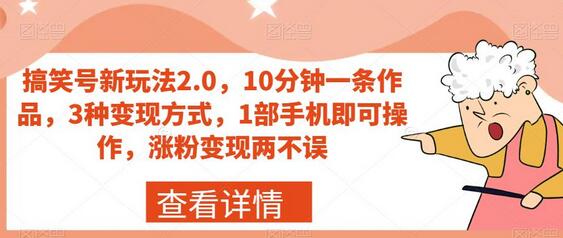 搞笑号新玩法2.0,10分钟一条作品,3种变现方式,1部手机即可操作,涨粉变现两不误