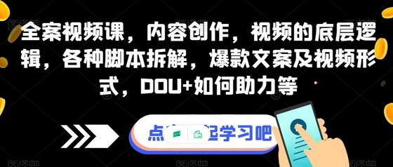全案视频课,内容创作,视频的底层逻辑,各种脚本拆解,爆款文案及视频形式,DOU+如何助力等