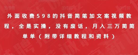 外面收费598的抖音简笔加文案视频教程,全是实操,没有废话,月入三万简简单单