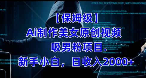 【保姆级】制作Ai美女原创视频+吸男粉项目,小白日收入2000+