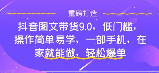 抖音图文带货9.0,低门槛,操作简单易学,一部手机,在家就能做,轻松爆单
