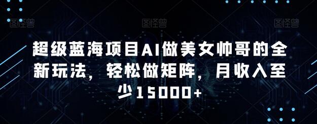 超级蓝海项目AI做美女帅哥的全新玩法,轻松做矩阵,月收入至少15000+