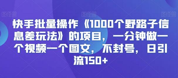 快手批量操作《1000个野路子信息差玩法》的项目,一分钟做一个视频一个图文,不封号,日引流150+