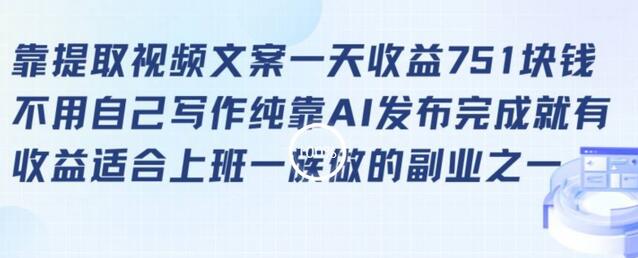 靠提取视频文案一天收益751块,适合上班一族做的副业