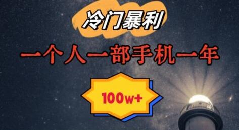 暴利冷门赛道,一单268,一个人一部手机一年100w