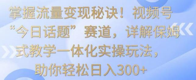 掌握流量变现秘诀!视频号“今日话题”赛道,详解保姆式教学一体化实操玩法,助你轻松日入300+