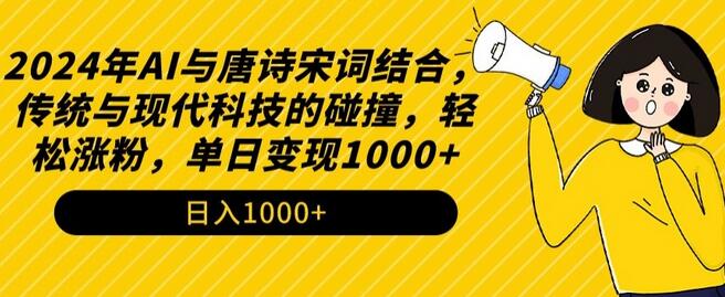 2024年AI与唐诗宋词结合,传统与现代科技的碰撞,轻松涨粉,单日变现1000+