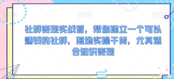社群变现实战营,帮你建立一个可以赚钱的社群,落地实操干货,尤其适合知识变现