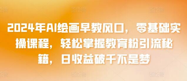2024年AI绘画早教风口,零基础实操课程,轻松掌握教育粉引流秘籍,日收益破千不是梦