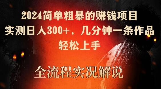 2024简单粗暴的赚钱项目,实测日入300+,几分钟一条作品,轻松上手