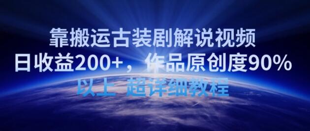 靠搬运古装剧解说视频,日收益200+,作品原创度90%以上,超详细教程