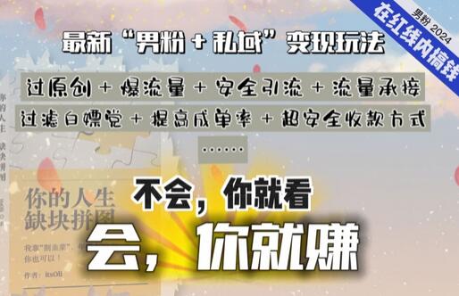 “男粉”变现这个赛道,存在很多年了,很多人听过、玩过,但很少人真的会玩、会赚。多年以来,不变的是人性,变的是【引流的平台+引流的操作】、【承接流量的途径+转化流量的方法】、【应对监管的方式+整合资源的能力】……会,你就赚;不会,你就看。“男粉+私域”变现,算是可以一直做的项目。永远记着:但凡赚钱的项目,都跟人性相关;但凡顺应人性的生意,来钱都很快。