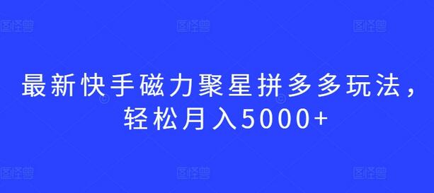 最新快手磁力聚星拼多多玩法,轻松月入5000+